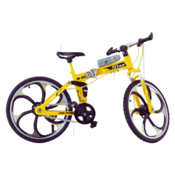 The Alloy Model Bicycle Showpiece is a meticulously crafted foldable cycle designed to captivate bike enthusiasts, collectors, and gift recipients. Featuring a miniature racing mountain bike design, this showpiece combines functionality with aesthetics, making it an ideal decorative item or toy. Built with durable alloy materials, it replicates the sleek form and detailing of a real racing mountain bike, making it perfect for display, gifting, or light play.