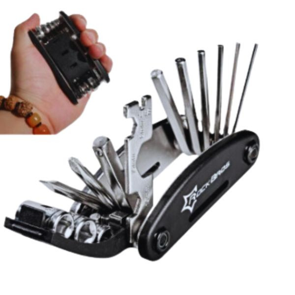 The Bicycle Repair Kit Multi-Tool (16-in-1) is a compact and versatile toolset designed for cyclists to perform quick repairs and maintenance on the go. This multi-functional tool includes essential wrenches, screwdrivers, and hex keys, making it ideal for handling common bicycle issues such as loose bolts, chain adjustments, and minor mechanical fixes. Its durable, portable, and lightweight design ensures easy carrying during rides, making it a must-have accessory for cyclists of all levels.