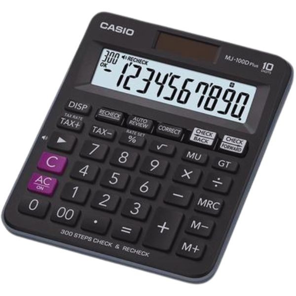 The Casio MJ-100DPLUS-W-DP-W is a versatile and efficient desktop calculator designed for business and personal use. It features a user-friendly interface with advanced functions for accurate calculations, ensuring reliability and convenience for daily tasks. The calculator includes "Check & Recheck" functionality for reviewing and correcting entries, making it ideal for financial and data-heavy operations. Its durable design and large display enhance usability, while additional features like tax calculations, percentage keys, and memory functions offer added utility.