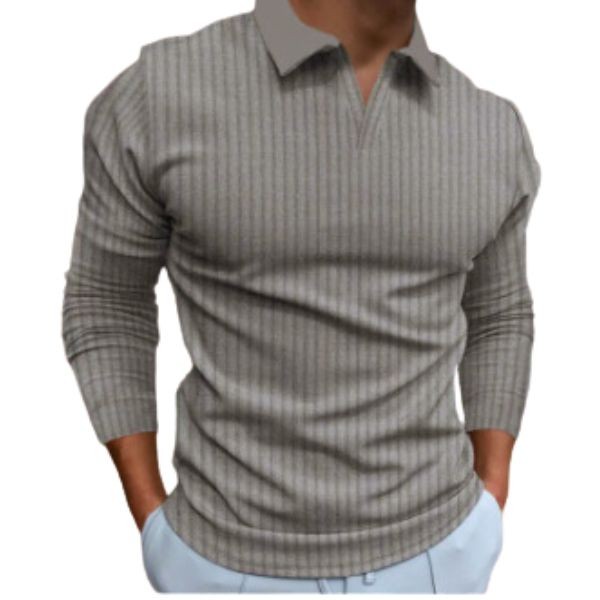 This Cross-Border European and American Wish Men's New Foreign Trade Long Sleeve V-neck Polo Shirt combines a sleek and minimalist design with versatile functionality, making it a must-have for any modern wardrobe. Designed with a solid color aesthetic, this polo shirt offers a timeless and professional look suitable for both casual outings and semi-formal occasions. The soft and breathable fabric ensures all-day comfort, while the V-neck collar adds a stylish twist to the traditional polo design.