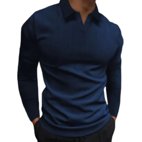 This Cross-Border European and American Wish Men's New Foreign Trade Long Sleeve V-neck Polo Shirt combines a sleek and minimalist design with versatile functionality, making it a must-have for any modern wardrobe. Designed with a solid color aesthetic, this polo shirt offers a timeless and professional look suitable for both casual outings and semi-formal occasions. The soft and breathable fabric ensures all-day comfort, while the V-neck collar adds a stylish twist to the traditional polo design.