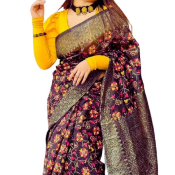Ideal for any fashion-forward woman, this Dhupian Half Silk Skin Print Saree is a perfect blend of style and comfort, adding a unique touch to your ethnic wardrobe.