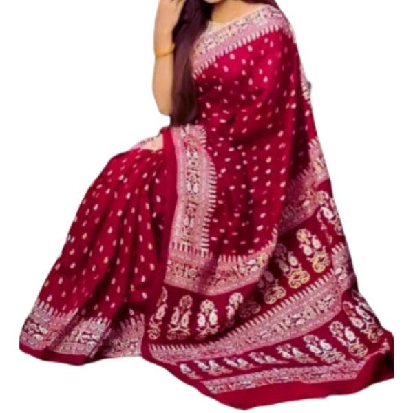 Ideal for any fashion-forward woman, this Dhupian Half Silk Skin Print Saree is a perfect blend of style and comfort, adding a unique touch to your ethnic wardrobe.