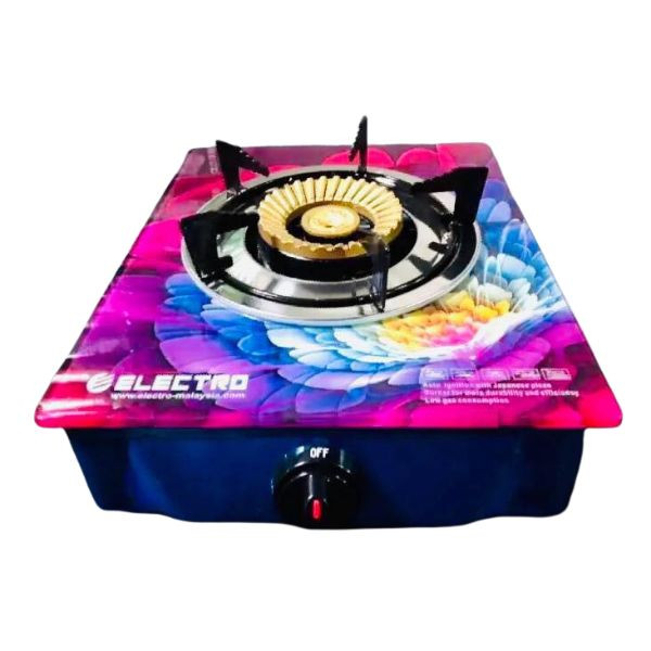The ELECTRO Single Burner Glass Top Gas Stove is a compact, efficient, and stylish cooking appliance designed for modern kitchens. Its sleek glass top enhances the aesthetic appeal while providing a durable and easy-to-clean surface. This gas stove is perfect for small households, dormitories, or outdoor cooking setups. Equipped with a single burner, it delivers consistent and powerful heat, ensuring efficient cooking while saving space and energy.