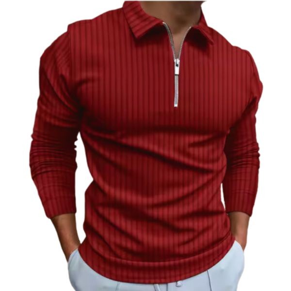 Foreign Trade OEM Solid Color Striped Zipper Long Sleeved Polo Shirt for Men
