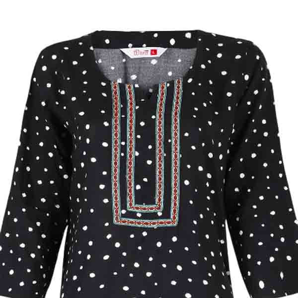 Ladies KameezStyle: WNR-LKW24-2026Fabric: LinenSize: S, M, L, XLColor: Black Ball Print (As given picture)