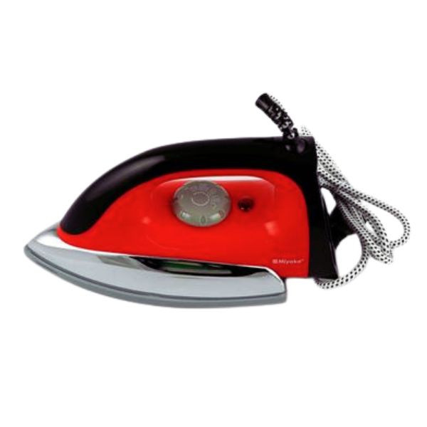 The Miyako EI-226 Electric Iron is a reliable appliance designed to make ironing efficient and user-friendly. Its non-stick Teflon-coated soleplate ensures smooth gliding over various fabrics, preventing sticking and scorching. The iron features an easy temperature setting with an indicator light, allowing precise control suitable for different materials. The deluxe metal cover and swivel cord enhance durability and flexibility during use. Operating at 220-240V, the iron weighs approximately 6 lbs (2.7 kg), providing a balance between stability and ease of handling. Its ergonomic design ensures comfortable use, making it a practical choice for everyday ironing tasks.