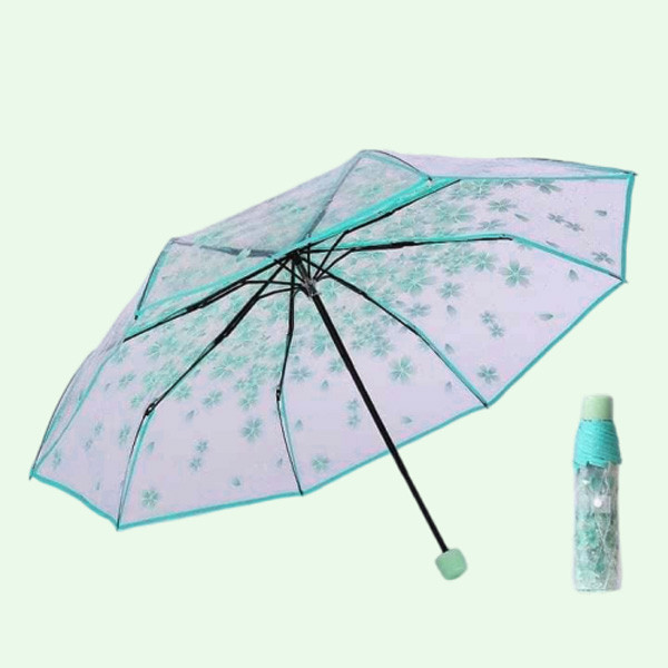 Three Fold Transparent Umbrella Cherry Blossom Korean Version