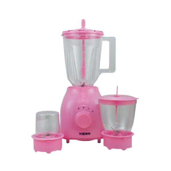 The VISION Blender 300W 3-in-1 is a versatile kitchen appliance designed to streamline your food preparation tasks. Equipped with a 1.6-liter transparent Polystyrene (PS) jar, it offers ample capacity for blending, juicing, grinding, and mincing. The high-quality stainless steel blade ensures efficient processing of both soft and hard ingredients. Multiple speed settings allow for precise control, catering to various culinary needs. Safety features include motor overheat protection and a child safety interlock, ensuring secure operation. The appliance operates on 220~240V, 50Hz, with a power consumption of 300W. Its detachable parts facilitate easy cleaning, enhancing user convenience.
