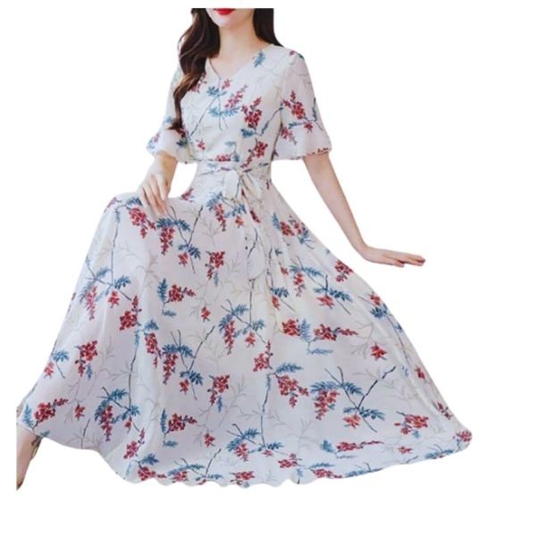 This China Linen Printed Long Gown combines traditional charm with a modern silhouette, making it an ideal choice for women looking to add sophistication and style to their wardrobe.