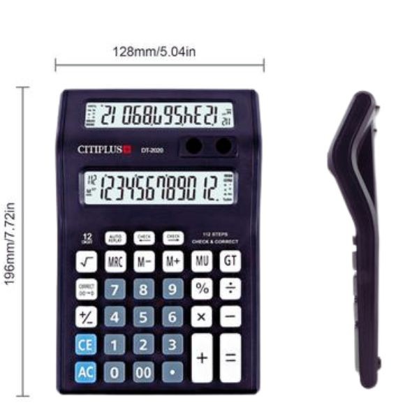 The Citiplus Double Display Business Calculator is a versatile and user-friendly calculator designed for professional and business use. It features a dual-display system, allowing users to perform complex calculations while displaying results and intermediate steps simultaneously on separate screens. This makes it ideal for tasks that require keeping track of multiple calculations, such as accounting, invoicing, and financial analysis.