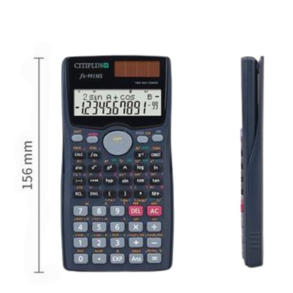 The Citiplus FX-991MS Scientific Calculator is an advanced, versatile, and durable tool designed to meet the needs of students, engineers, and professionals. Equipped with a 2-line display, this calculator allows for complex equation solving, statistical calculations, and multiple scientific functions. Its compact design makes it portable, while the user-friendly interface ensures easy and intuitive operation. With over 400 functions, including trigonometric, exponential, logarithmic, and statistical calculations, the Citiplus FX-991MS is perfect for daily academic and professional tasks. It is powered by both solar and battery sources, ensuring reliable use even in low-light conditions.