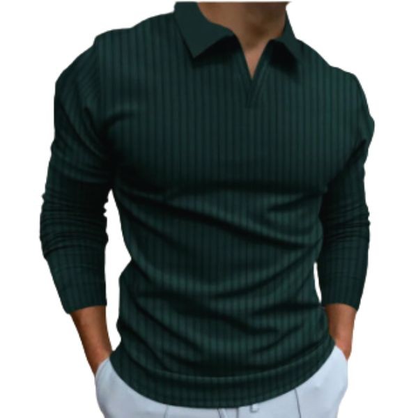 This Cross-Border European and American Wish Men's New Foreign Trade Long Sleeve V-neck Polo Shirt combines a sleek and minimalist design with versatile functionality, making it a must-have for any modern wardrobe. Designed with a solid color aesthetic, this polo shirt offers a timeless and professional look suitable for both casual outings and semi-formal occasions. The soft and breathable fabric ensures all-day comfort, while the V-neck collar adds a stylish twist to the traditional polo design.