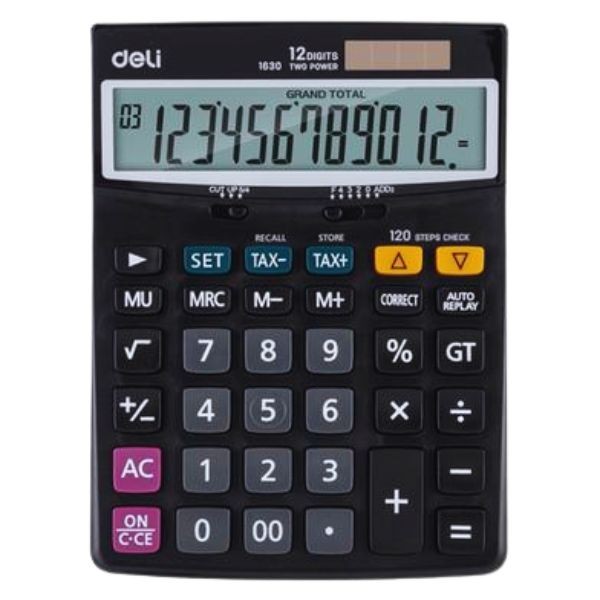 The Deli E1630 Calculator is a reliable and user-friendly electronic calculator designed to meet the needs of both home and office environments. With its sleek black design, this calculator offers a wide range of functions, making it suitable for basic arithmetic, tax calculations, and more. It’s equipped with a large, easy-to-read LCD display for clear visibility, and it’s perfect for students, professionals, or anyone needing quick and accurate calculations. The Deli E1630 is a perfect balance of style, functionality, and affordability.