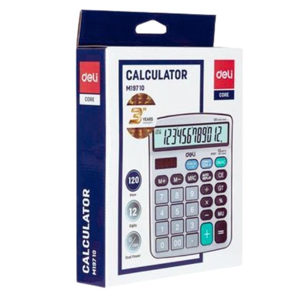 The Deli EM19710 Calculator is a reliable and durable 12-digit metal calculator, perfect for everyday office, business, or personal use. Designed for functionality and ease, this calculator offers essential computing features such as basic arithmetic operations, percentage calculations, and memory functions. Its sturdy metal build enhances longevity, while the angled display ensures comfortable viewing for prolonged use. Lightweight and compact, the EM19710 calculator combines style and practicality, making it ideal for environments that demand both accuracy and resilience.