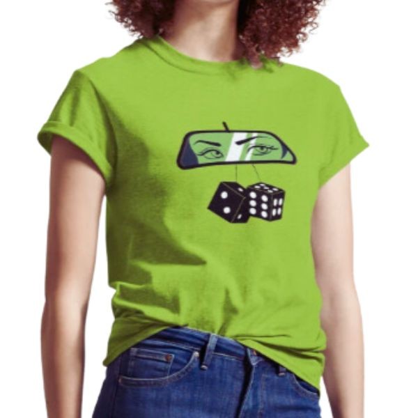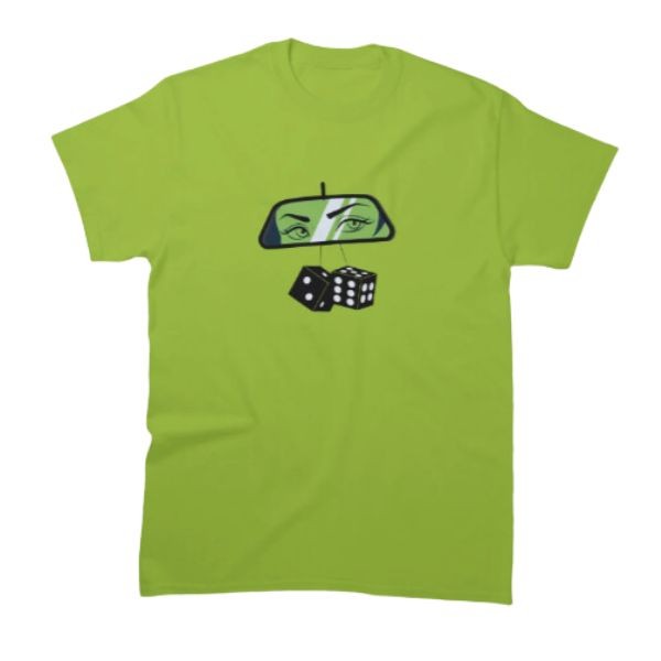 Add a playful touch to your wardrobe with the Dipping Rear View Mirror with Dices Classic T-Shirt. This stylish tee features a vibrant graphic of a classic rearview mirror adorned with dangling dice, bringing retro vibes and a sense of nostalgia to any outfit. Designed for comfort and durability, this T-shirt is perfect for casual outings, themed events, or simply showcasing your love for vintage car culture.