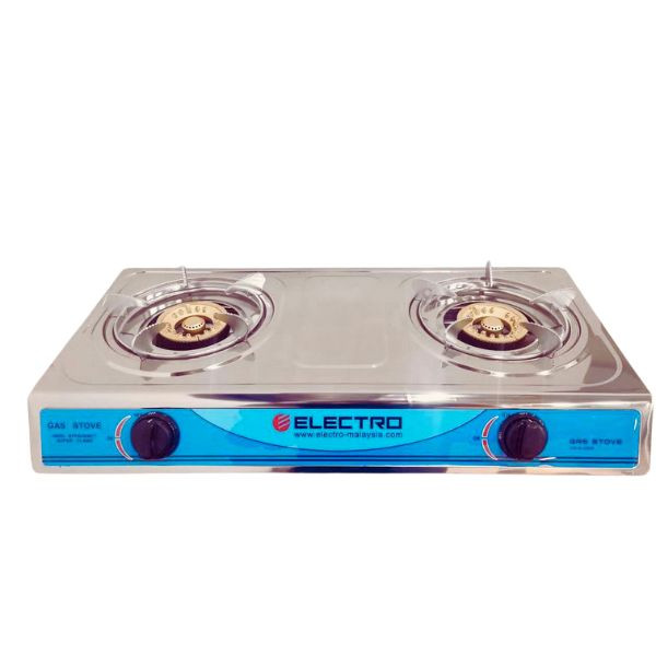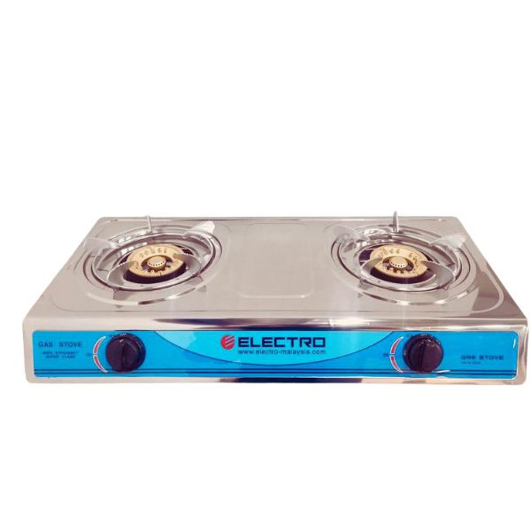 The ELECTRO Double Burner S.S. Gas Stove is a sleek and efficient kitchen appliance designed to meet daily cooking needs with ease. Crafted from durable stainless steel, it ensures long-lasting performance, easy maintenance, and resistance to corrosion. This double-burner gas stove is compact, stylish, and energy-efficient, making it an ideal choice for modern households, small kitchens, or outdoor cooking.