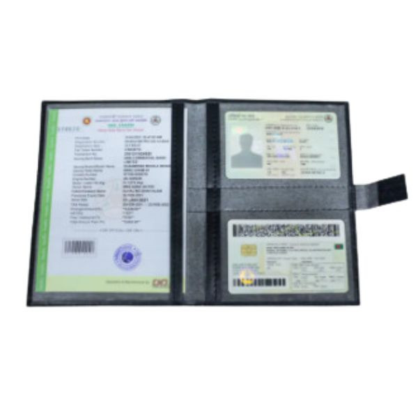 Multiple slots for car/bike license, RC book, insurance papers, PUC certificate, and more.