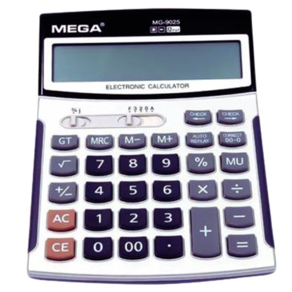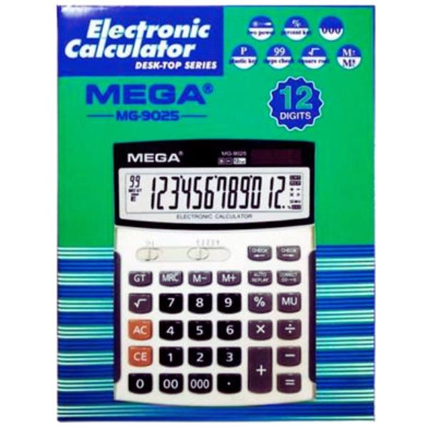 The Mega MG-9025 is a highly functional and user-friendly electronic calculator designed for a variety of professional and personal applications. With a 12-digit large LCD display, it is ideal for accounting, office work, and general arithmetic. Its compact and durable design ensures long-lasting use, while its straightforward layout makes it easy to operate for users of all skill levels.