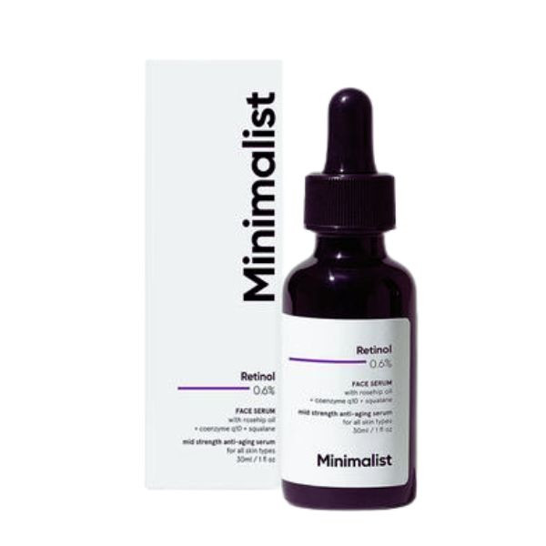 Minimalist's Retinol 0.6% Face Serum is a medium-strength anti-aging solution designed to diminish fine lines and wrinkles. Formulated in a stable, water-free base, it combines 0.6% pure retinol with Coenzyme Q10, Squalane, and Rosehip Oil to enhance skin elasticity and moisture. This fragrance-free, non-comedogenic serum is suitable for all skin types. For optimal results, apply in the evening after cleansing and before moisturizing, starting with alternate-day use and gradually increasing to daily application. Consistent use of sunscreen during the day is recommended. Individuals new to retinol are advised to begin with a lower concentration before transitioning to this formulation.