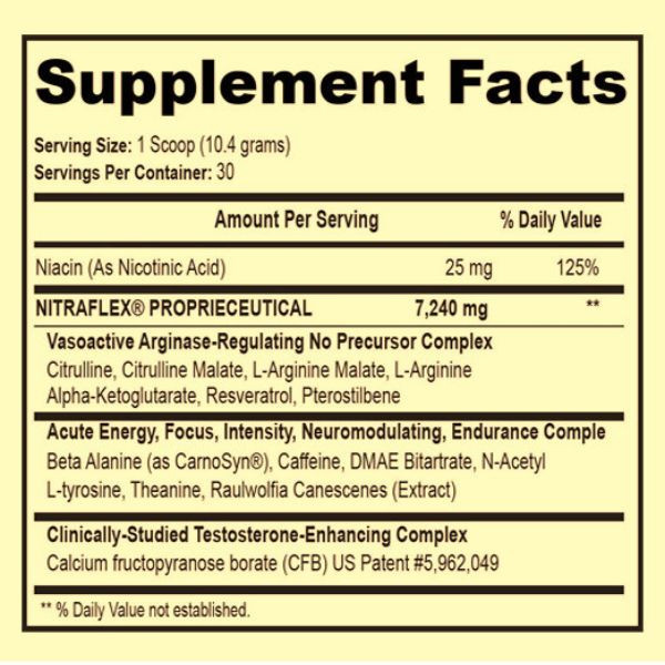 Nitraflex is a pre-workout formula designed to enhance strength, endurance, and overall workout performance. Combining hyperemia (increased blood flow) and testosterone-enhancing ingredients, Nitraflex targets athletes and fitness enthusiasts seeking peak physical output during training sessions. This formula leverages clinically studied components to deliver intense focus, explosive energy, and improved muscular pumps, all while supporting healthy testosterone levels.