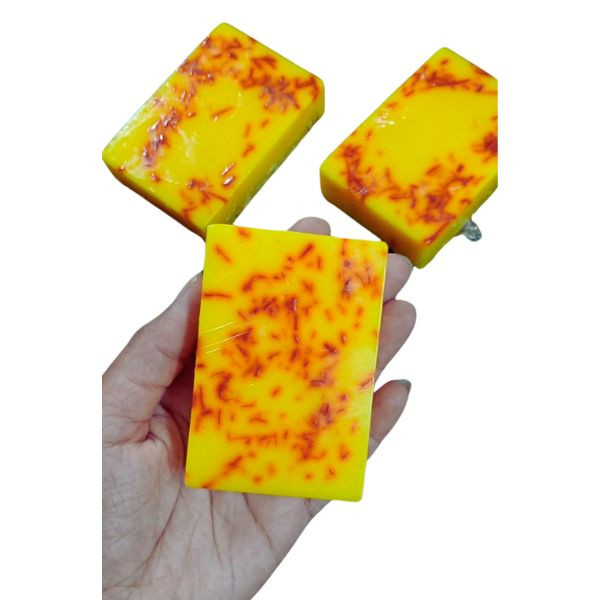 Indulge your skin with the luxurious Real Saffron Goat Milk Bar Whitening Handmade Soap, a unique blend of nature's finest ingredients designed to nourish, brighten, and rejuvenate. This artisanal soap combines the rich, moisturizing properties of goat milk with the exceptional skin benefits of real saffron, providing a gentle yet effective cleansing experience. Perfect for all skin types, this soap not only cleanses but also helps to reduce dark spots, improve skin tone, and impart a radiant glow. Handcrafted with love, each bar is free from harmful chemicals and additives, making it a safe choice for your daily skincare routine.