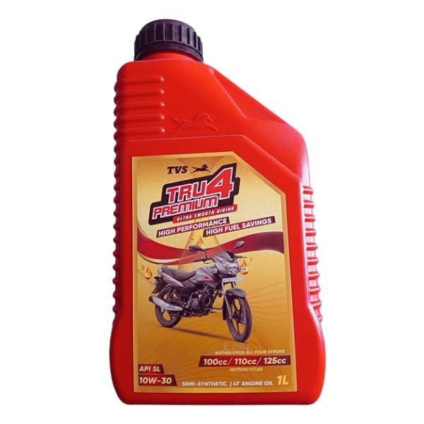 TVS Tru 4 Premium 10W-30 is a high-performance semi-synthetic engine oil designed to meet the needs of modern two-wheelers. It provides excellent engine protection, smooth performance, and superior durability under varying operating conditions. This oil is ideal for both city commuting and highway riding, ensuring optimal performance for extended periods.