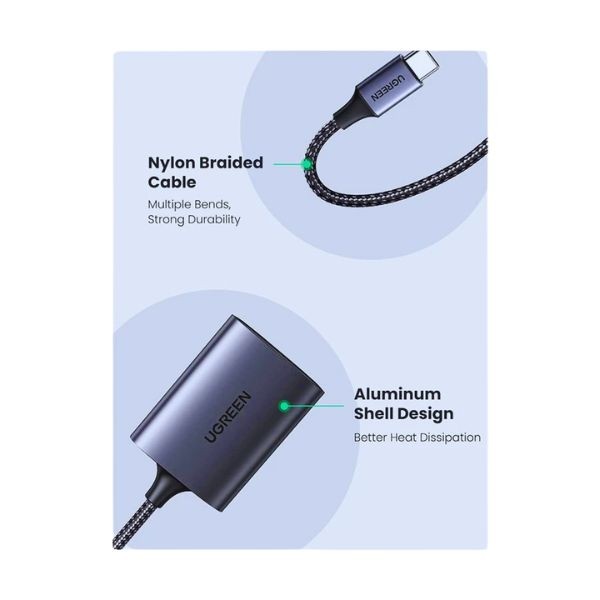 The UGREEN CM401 (80888) USB Type-C to SD/TF Card Reader is a sleek and versatile device designed for high-speed data transfer and easy file management. Ideal for photographers, videographers, and digital content creators, this compact card reader is compatible with a wide range of devices, including laptops, tablets, and smartphones with a USB-C port. It supports both SD and TF (microSD) cards, allowing users to quickly access photos, videos, and other files. With a durable aluminum casing and plug-and-play functionality, the CM401 combines style and functionality for convenient, on-the-go use.